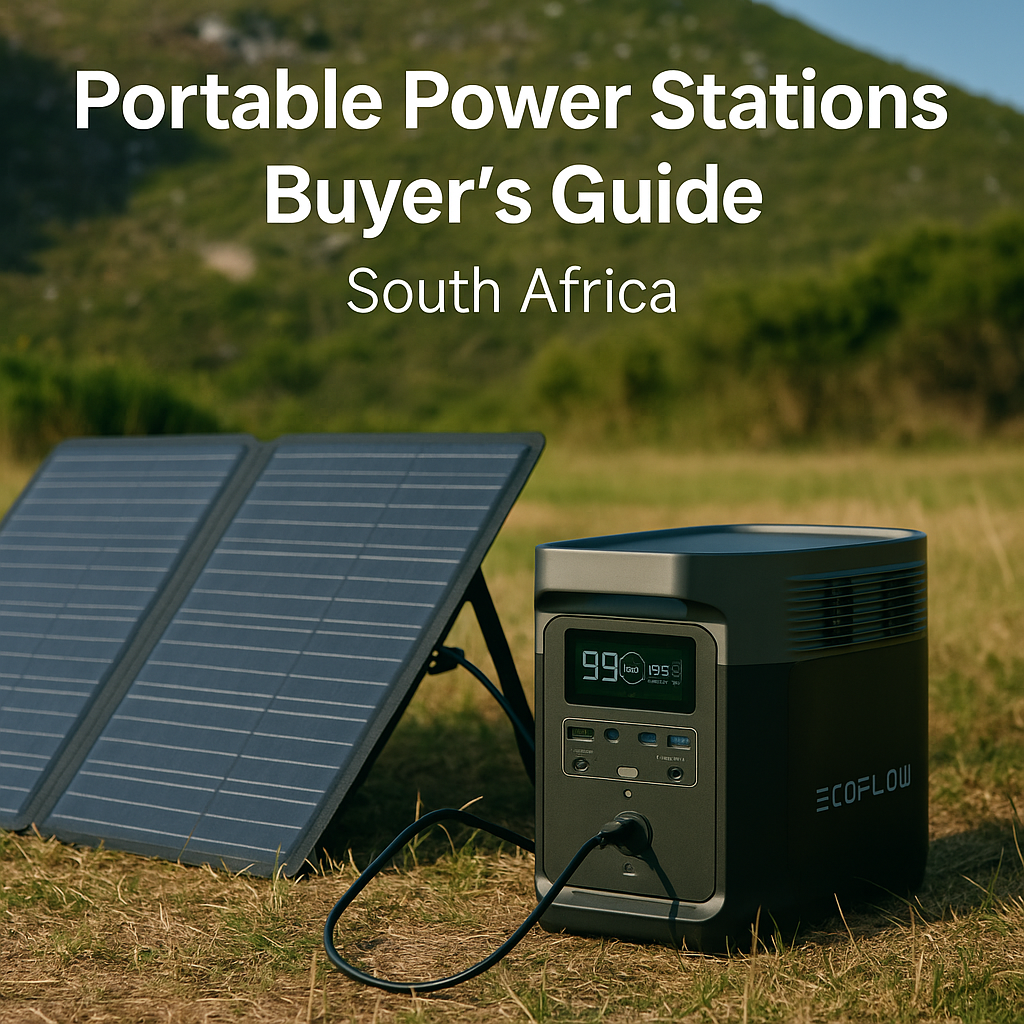 How to choose the right portable power station: sizing in Wh/W, LFP battery cycles, solar input, UPS features, and recharge options. EcoFlow picks and use-case templates for SA.