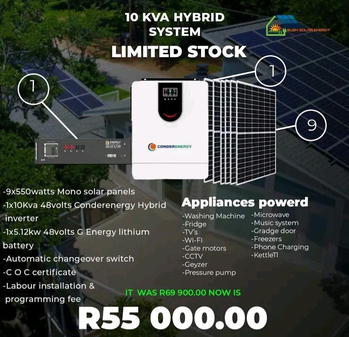 We do installation for solar system We sells &supply also materials such as:solar panels,lithium batteries &inverters for more information please wattspp on 27638198119
